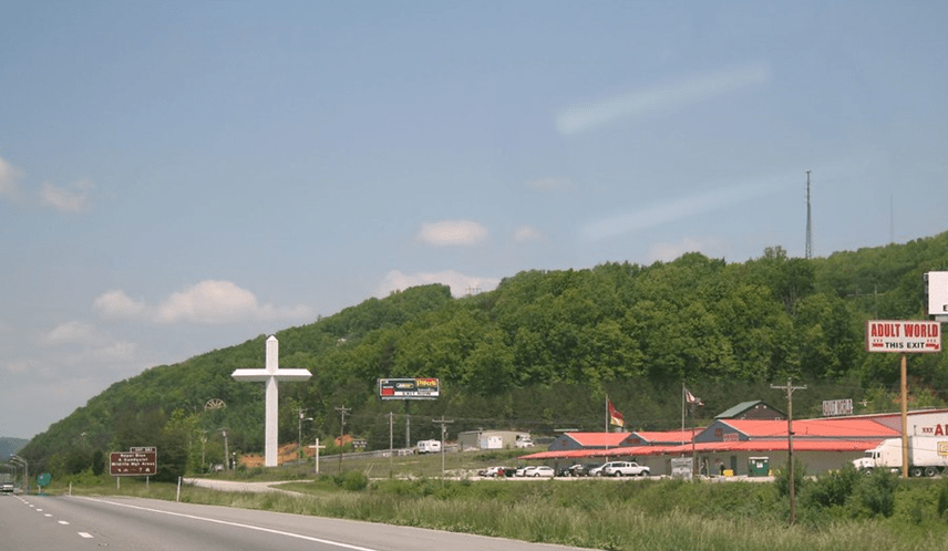 Reading a Family Life devotional, I came across a reference to something that I’d seen many times when I lived near I-75. Ed Uszynsk writes: “Driving on I-75 near Exit 141 in Caryville, Tennessee, you’ll see a 101-foot cross greeting you from a distance, a massive silver structure that fills your windshield as you get closer. Arriving at its base, you’ll also see a huge ranch house structure with a sign on the front saying ‘Adult World.’